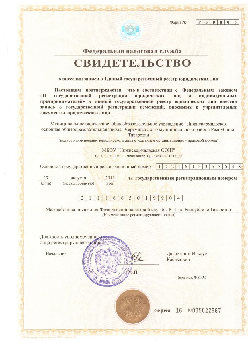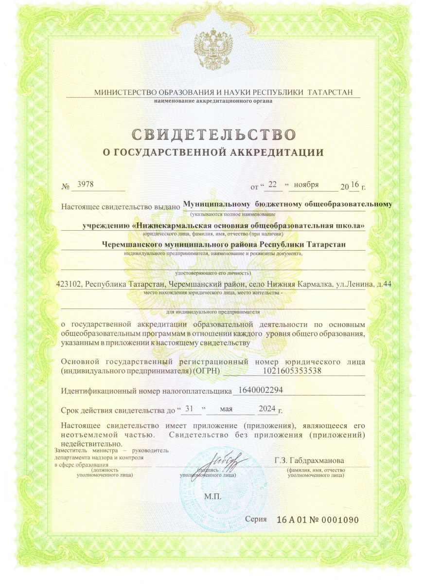 Муниципальное бюджетное общеобразовательное учреждение «Нижнекармальская основная общеобразовательная школа» Черемшанского муниципального района Республики Татарстан