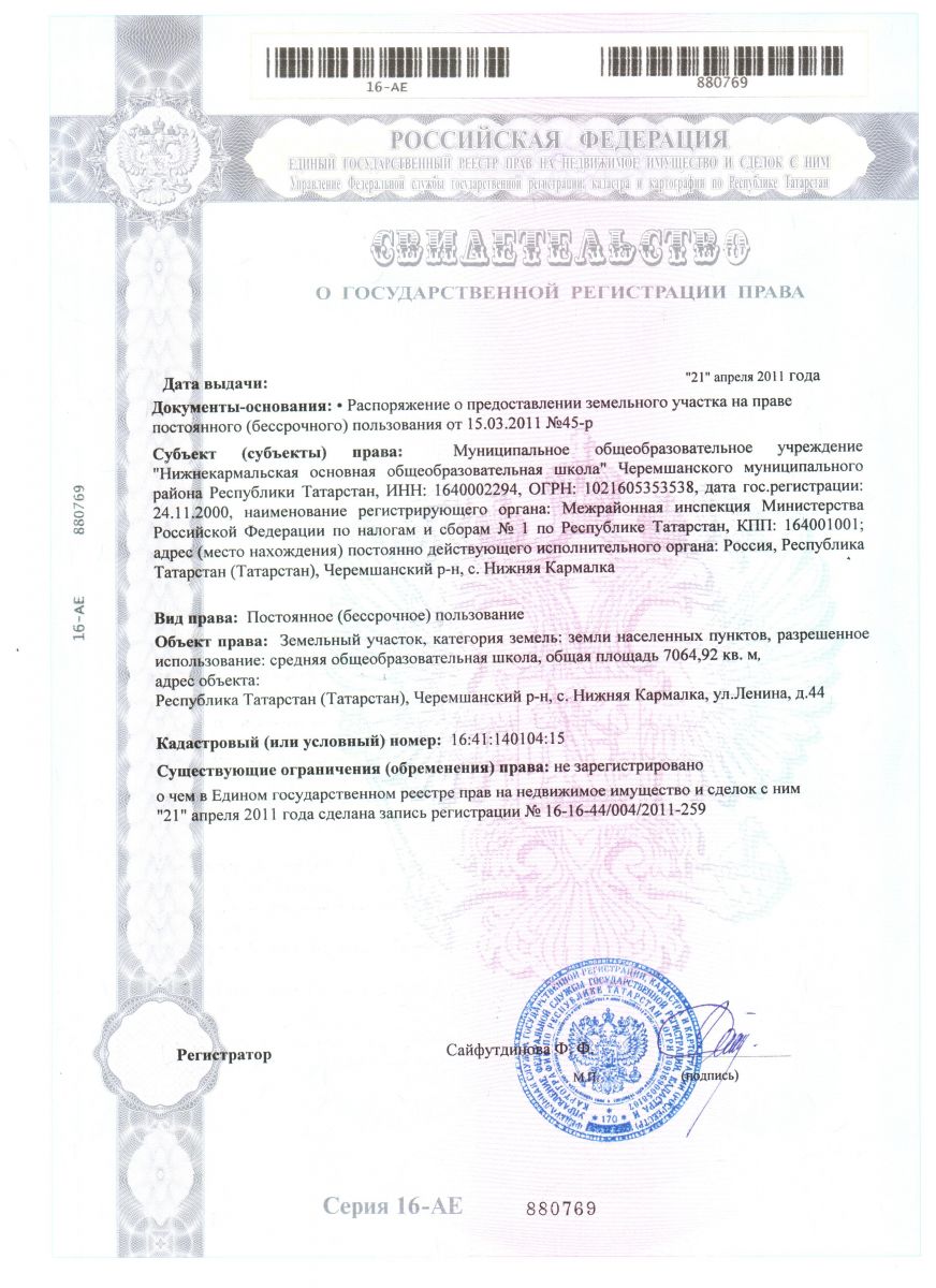 | Адрес: | 423102, Республика Татарстан, Черемшанский район, с. Нижняя Кармалка, ул. Ленина, д. 44 |