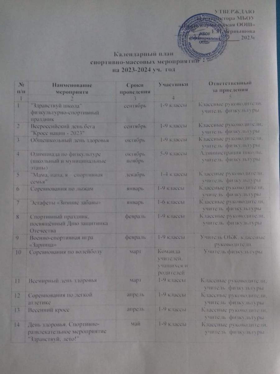 Календарный план спортивно-массовых мероприятий