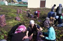 Мәктәп бакчасында бүген көзге өмә.Укучылар җәй буена карап, тәрбияләп үстергән кишер, чөгендерләрне җыеп алдылар. Уңыш мул. Пешекче апаларыбыз тәмле ашлар, салатлар белән сыйлаячак.