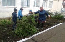 Учащиеся школы провели уборку своего цветника и приготовили почву на следующую весну.