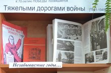 День Победы – это великий праздник, он всегда будет самым ярким и незабываемым событием военной истории нашего Отечества, потому что Победа добыта ценой многих жизней, величайшего напряжения усилий всего нашего народа. «Тяжелыми дорогами войны…», так называется книжная выставка в школьной библиотеки МБОУ «Черемшанская СОШ№1».