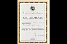 Благодарностью президента Республики Татарстан за заслуги в области образования и многолетнюю трудовую деятельность награждён Плотников Виктор Александрович.