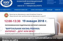 19 января 2018 года в 12 часов состоится третье заседание Республиканского родительского интернет-собрания, посвященное вопросам информационной безопасности детей. Данный проект – совместная инициатива Министерства образования и науки Республики Татарстан и Общественного совета при Министерстве образования и науки Республики Татарстан.