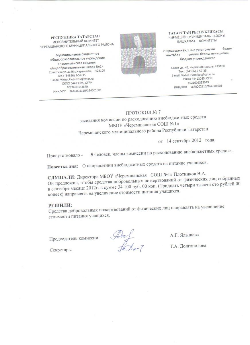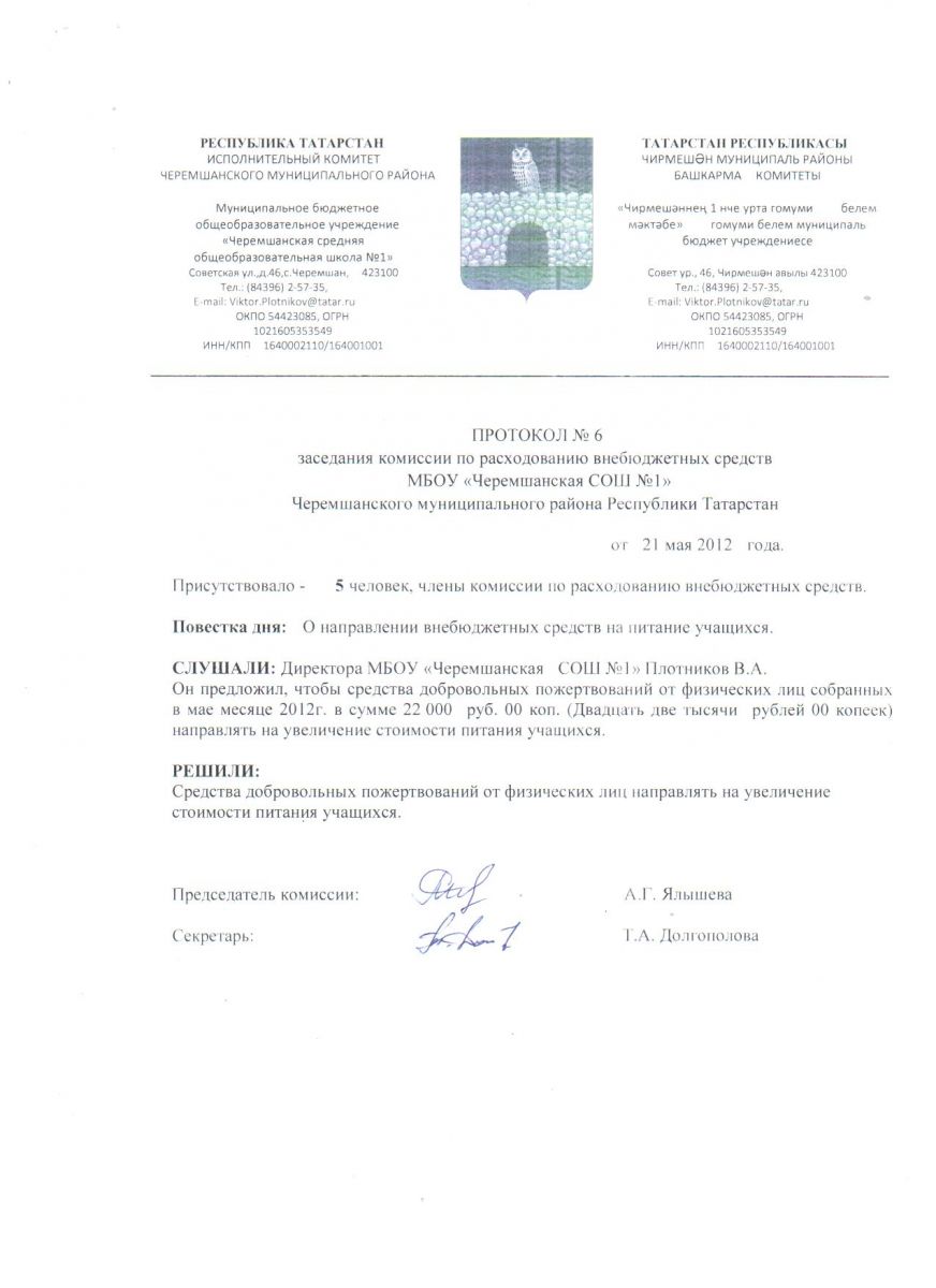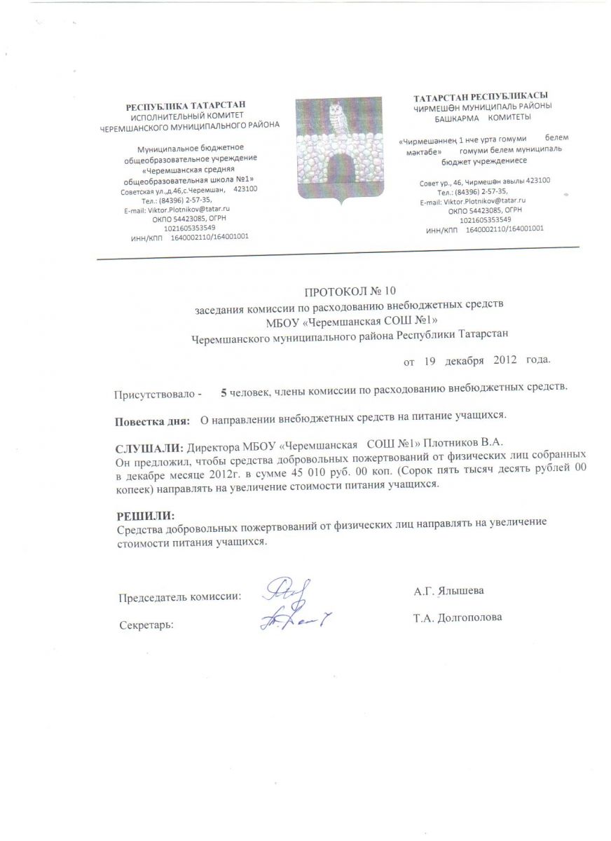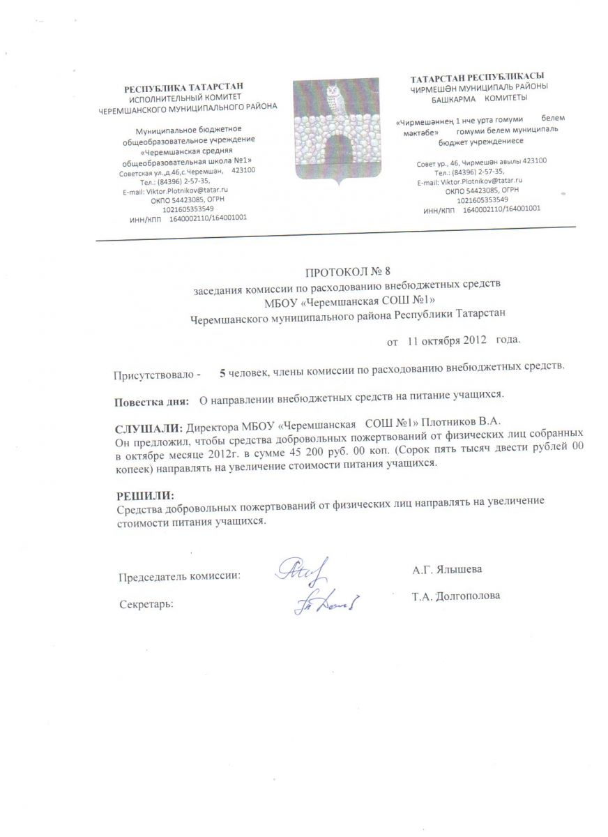 Протоколы Заседания Комиссии по расходованию внебюджетных средств (май-декабрь, 2012 г.)
