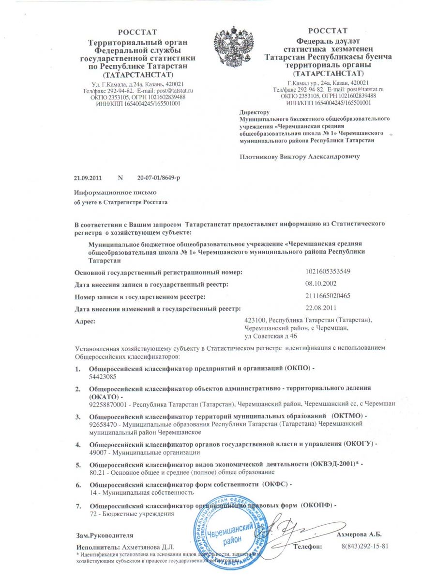 - Постановление Об изменении типа Муниципального общеобразовательного учреждения "Черемшанская средняя общеобразовательная школа №1" Черемшанского муниципального района Республики Татарстан и присоединении к нему Муниципального образовательного учреждения "Казанкинская начальная общеобразовательная школа" Черемшанского муниципального района Республики Татарстан