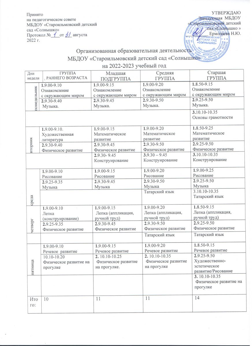 Организованная образовательная деятельность на 2022-2023 учебный год