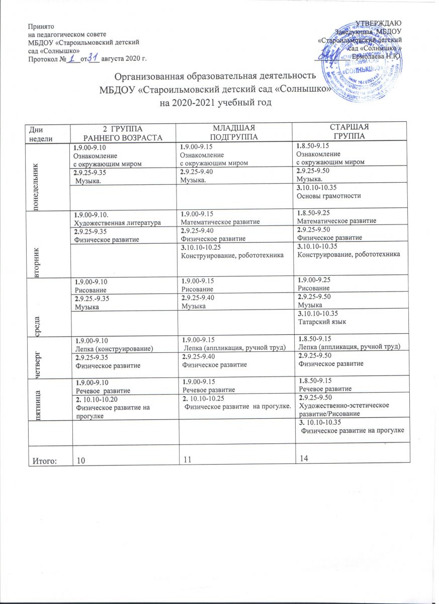 Организованная образовательная деятельность на 2020-2021 учебный год