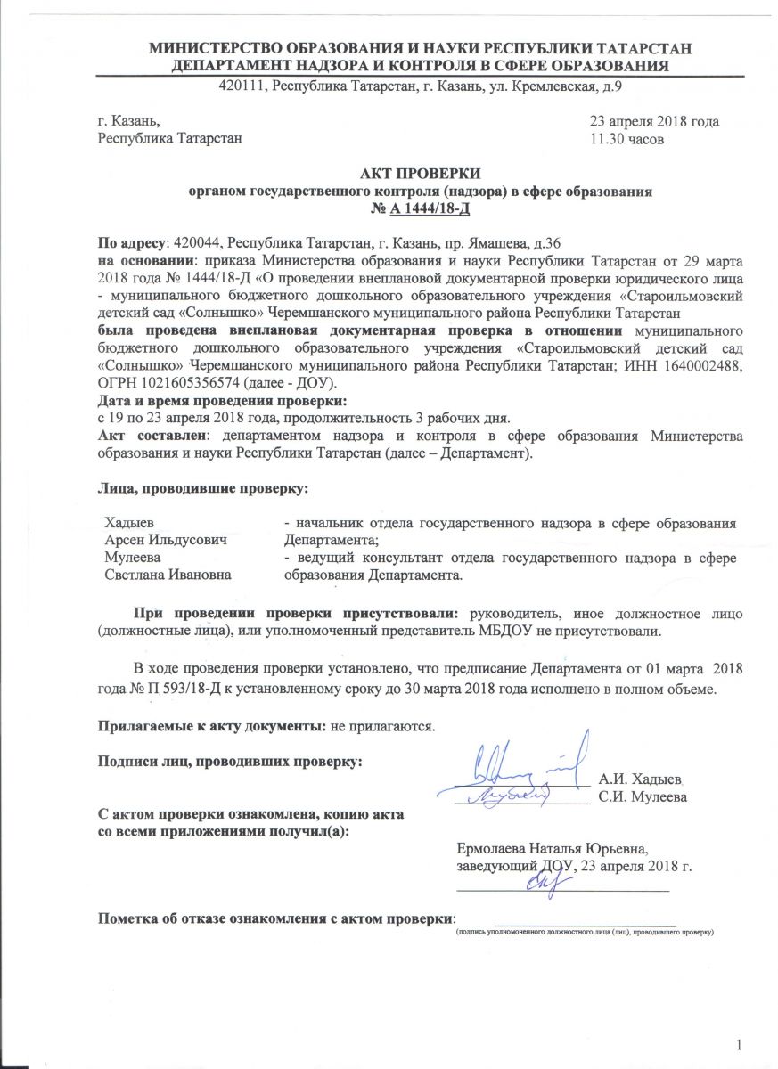 Акт проверки органом государственного контроля (надзора) в сфере образования №А-14444/18-Д