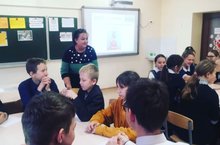 Мероприятие было проведено в форме интерактивной игры "Знатоки чувашского языка и литературы". Игра проходила по категориям: 1)перевод русских слов и предложений на чувашский язык; 2) части речи; 3) устное народное творчество; 4) лингвистические игры. Для игры были сформированы 2 команды. Ученики приняли активное участие. Это мероприятие было познавательным и интересным.
