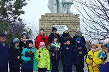 Ученики 8 класса очистили памятник от снега.