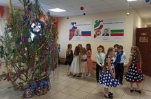 Ребята вместе со своими классными руководителями проявили невероятную фантазию при оформлении кабинетов. Во всех учебных классах ощущалось приближение волшебного праздника. А на улице в вечерние часы школа сверкает разноцветными огнями .Ребята с огромной радостью встретили самых долгожданных гостей на празднике – Деда Мороза и Снегурочку, и были не только зрителями, но и участниками праздника: представляли номера художественной самодеятельности, пели, водили хоровод вокруг ёлки, веселились.