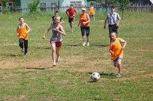 В нашем пришкольном лагере труда и отдыха дети не только, отлично справляются с работой, но и с футболом.