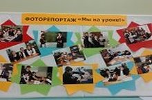 Оформление стенгазеты "Мы на уроке физике и математике" учениками 9 класса.