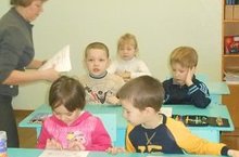 На занятиях учитель, Тузова Алевтина Леонидовна учит будущих первоклассников подготавливать рабочее место, правильно пользоваться пособиями и оборудованием, планировать свою работу, соблюдать последовательность ее выполнения, рационально использовать время, работать в определенном темпе: правильно сидеть, быть подтянутым, внимательно слушать, не перебивать другого, дополнять ответ товарища и пр