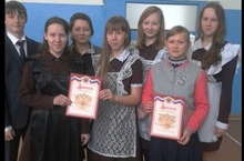 Нас отметили дипломами в номинации "Лучший конферанс" - Захарова Дарья, ученица 8 класса и Тузов Станислав, ученик 7 класса,
