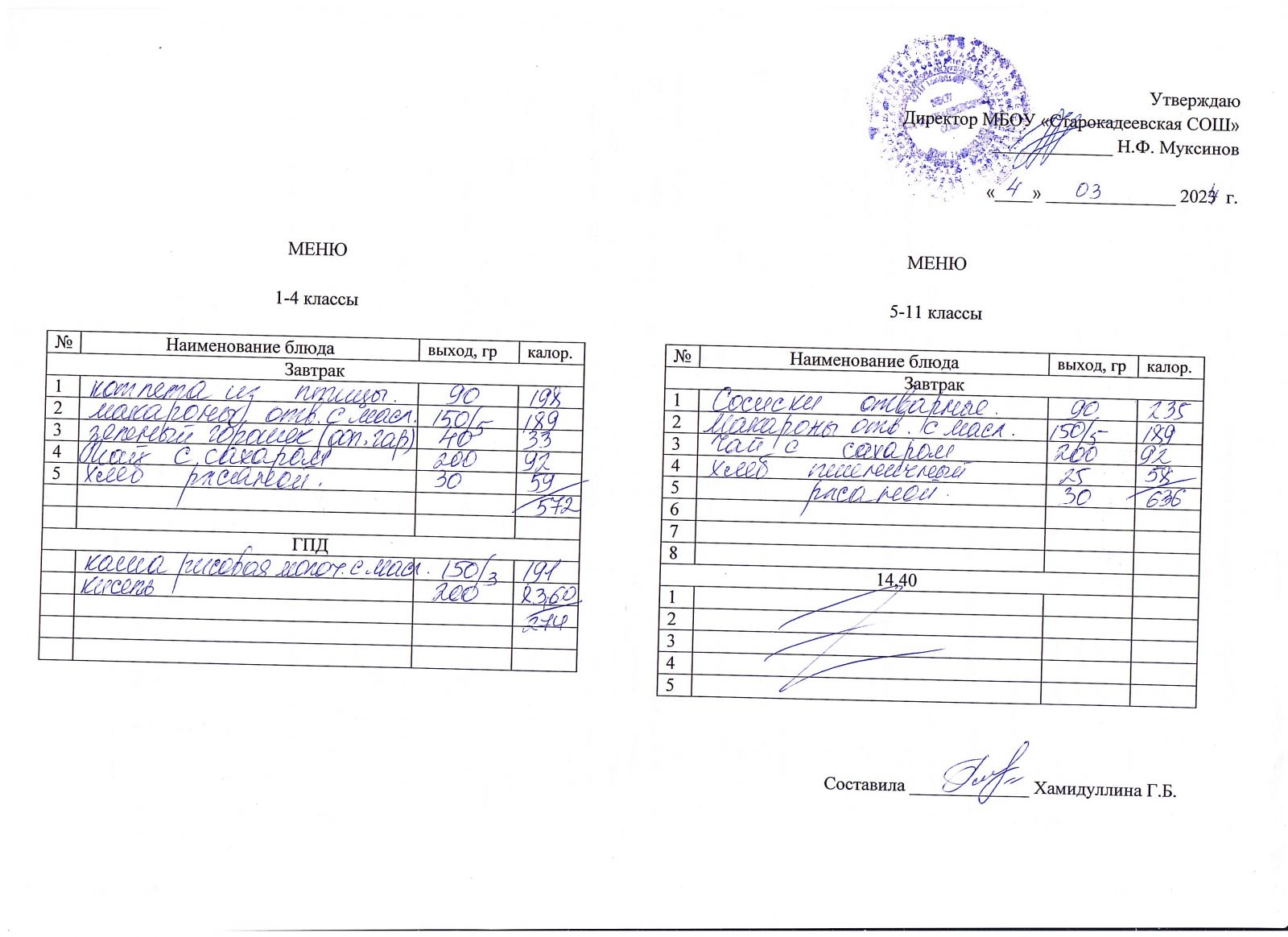 Об усилении контроля организации и качества питания в МБОУ «Старокадеевская СОШ» (Приказ)