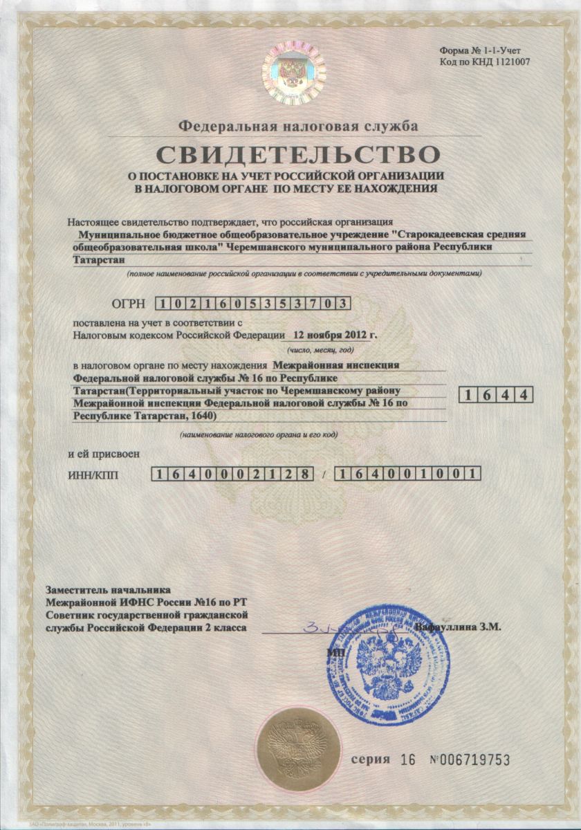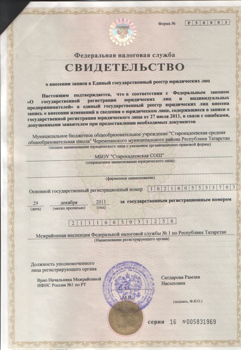 Регистрационные документы МБОУ "Старокадеевская СОШ"