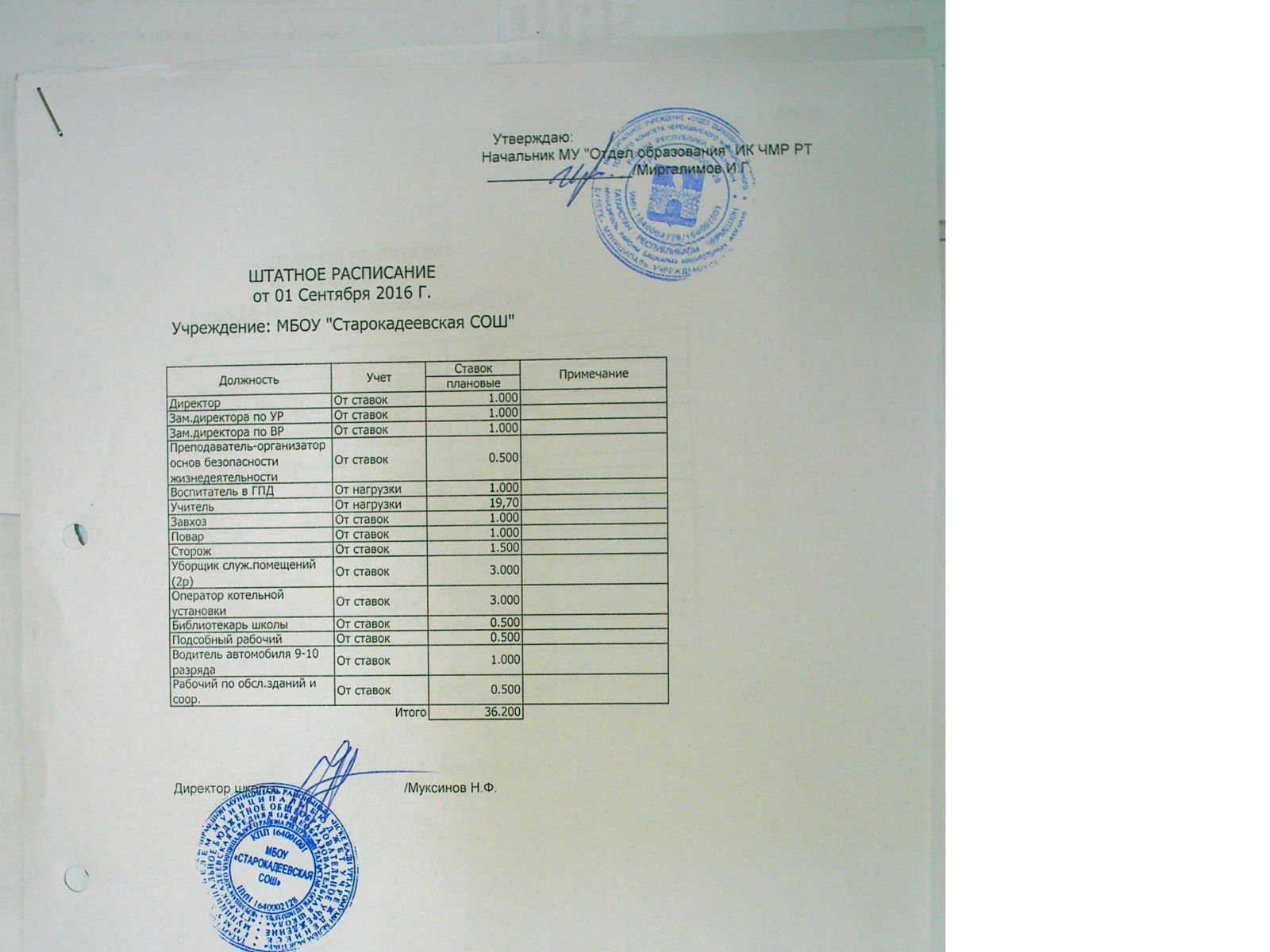 Штатное расписание МБОУ "Старокадеевская СОШ"