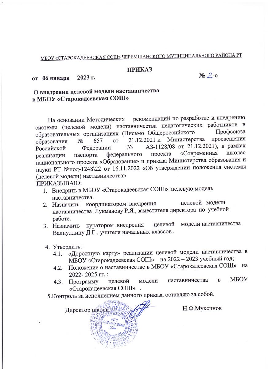 Короткое название: МБОУ "Старокадеевская СОШ"