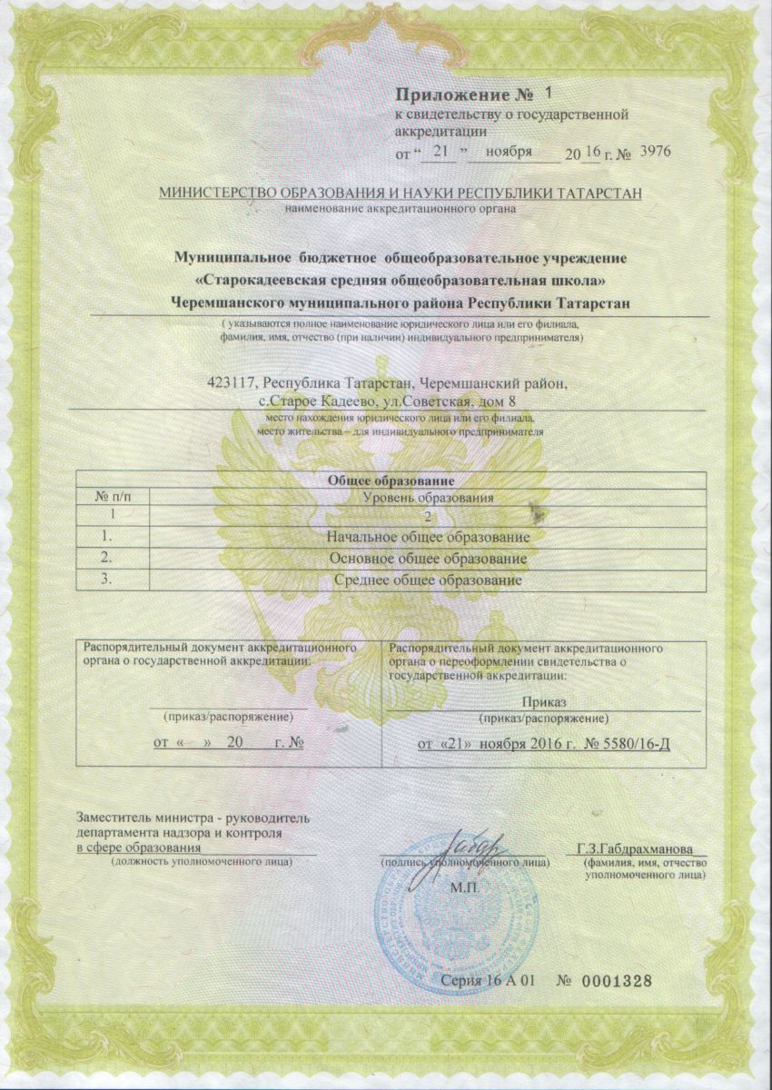 Муниципальное бюджетное общеобразовательное учреждение «Старокадеевская средняя общеобразовательная школа» Черемшанского муниципального района Республики Татарстан