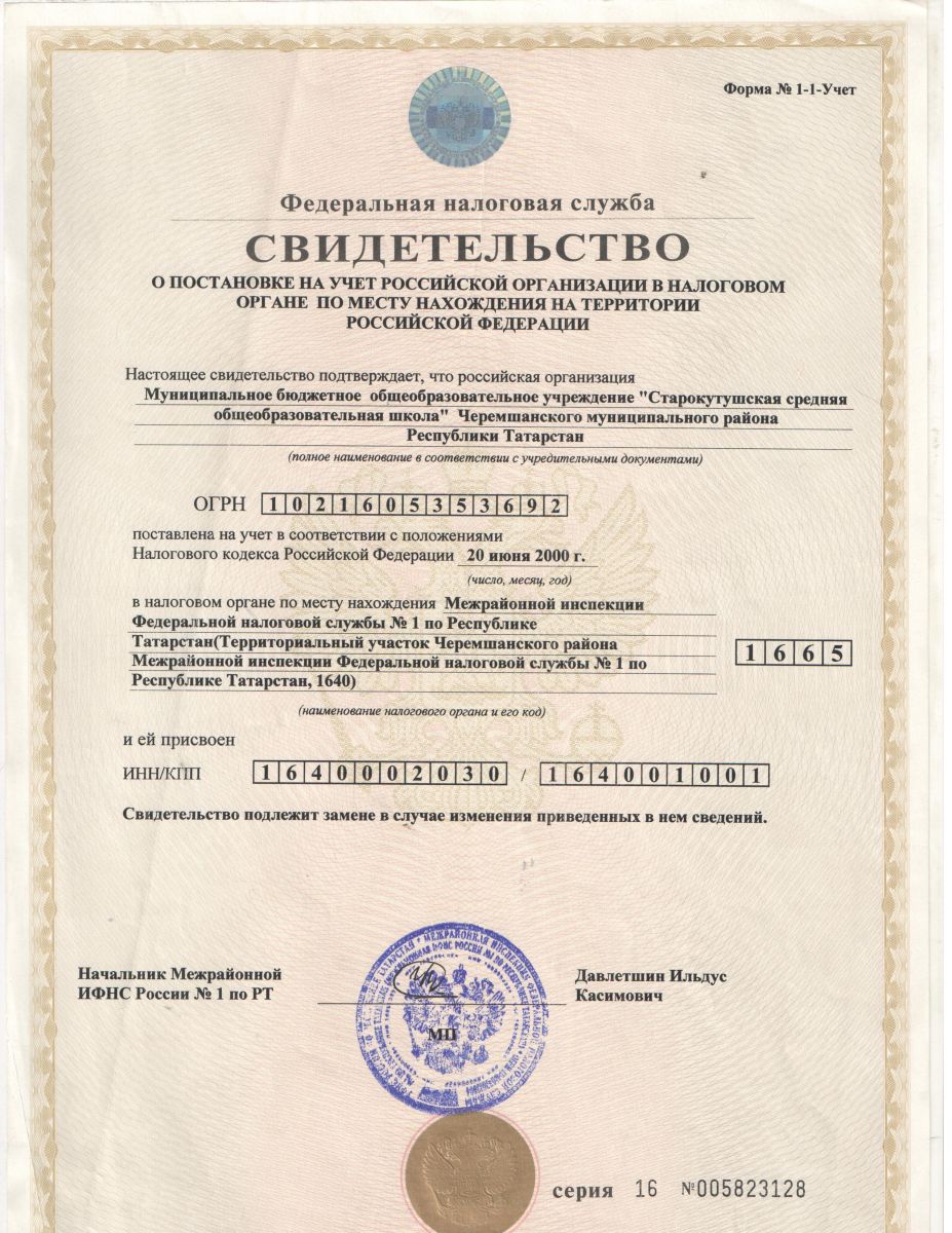 Муниципальное бюджетное общеобразовательное учреждение «Старокутушская основная общеобразовательная школа» Черемшанского муниципального района Республики Татарстан