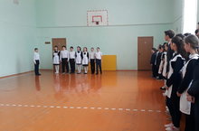 По традиции в школе прошёл смотр строя и песни, посвящённый Дню защитника Отечества, в котором приняли участие обучающиеся 4-9 классов.