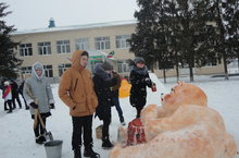 На территории школы началось строительство снежного городка.