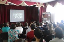 Бөек Җиңүнең 72 еллыгына әзерлек уңаеннан мәктәбебездә күп төрле чаралар үткәрелә. 4 май көнне исә укучылар һәм укытучылар район мәдәният йорты оештырган “Осенью 1941-ого” исемле кинофильм карадылар. -