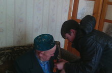 Бөек Җиңүнең 70 еллыгын каршылап... 8 нче сыйныфлар Факия әбине бәйрәмгә чакырдылар. 29.04.2015