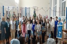 Сегодня прошел новогодний праздник для учащихся 5 – 9 классов. Праздник начался с поздравлений отличников и ударников, победителей и призеров предметных олимпиад на муниципальном уровне, призеров и участников различных творческих конкурсов. С новогодним поздравлением выступила директор школы Шарифуллина Р,В, Далее слово предоставили самим детям.