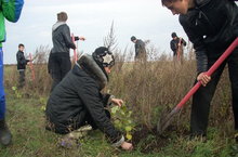 Сегодня, отмечая День посадки леса учащиеся посадили 150 укоренившихся саженцев тополя.