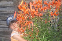 Рания узенең үстергән чәчәчкләре белән.