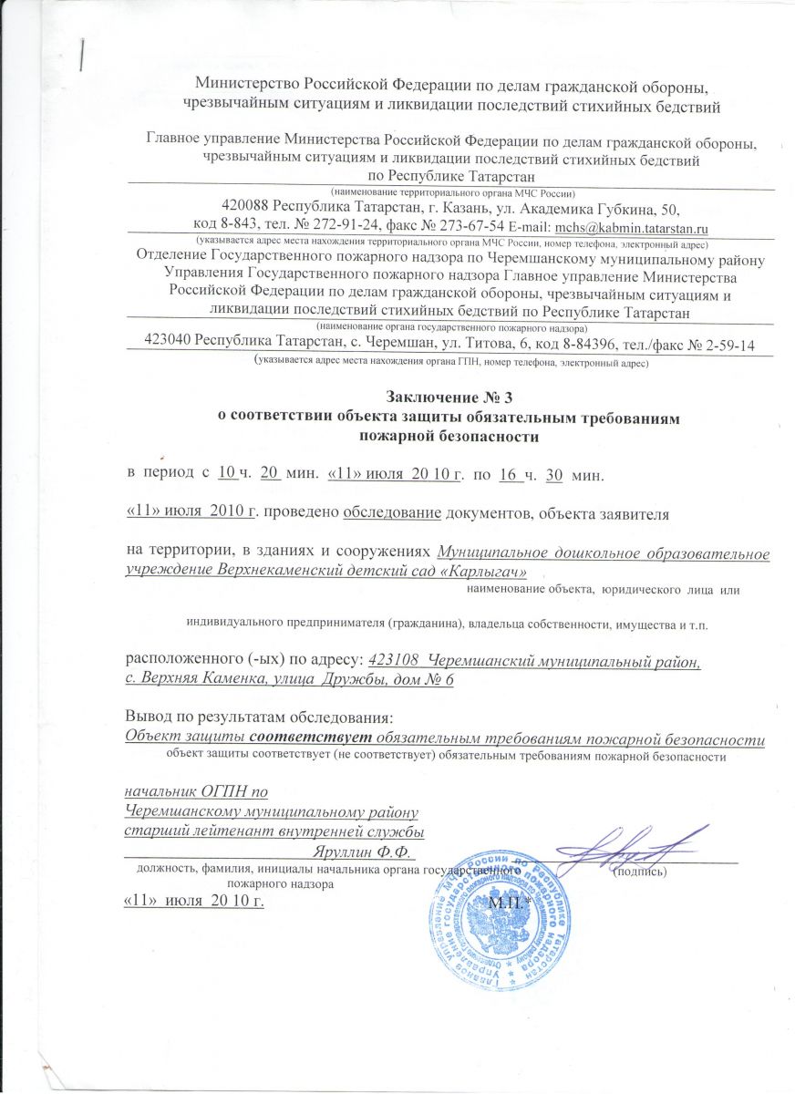 Пожарное заключения
