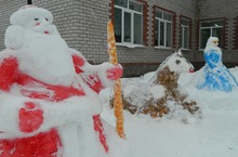 Мәктәп ишегалдында укчыларны Кар бабай һәм Кар кызы гына түгел, киләсе елның символы булып саналган акбүз ат та каршы ала.