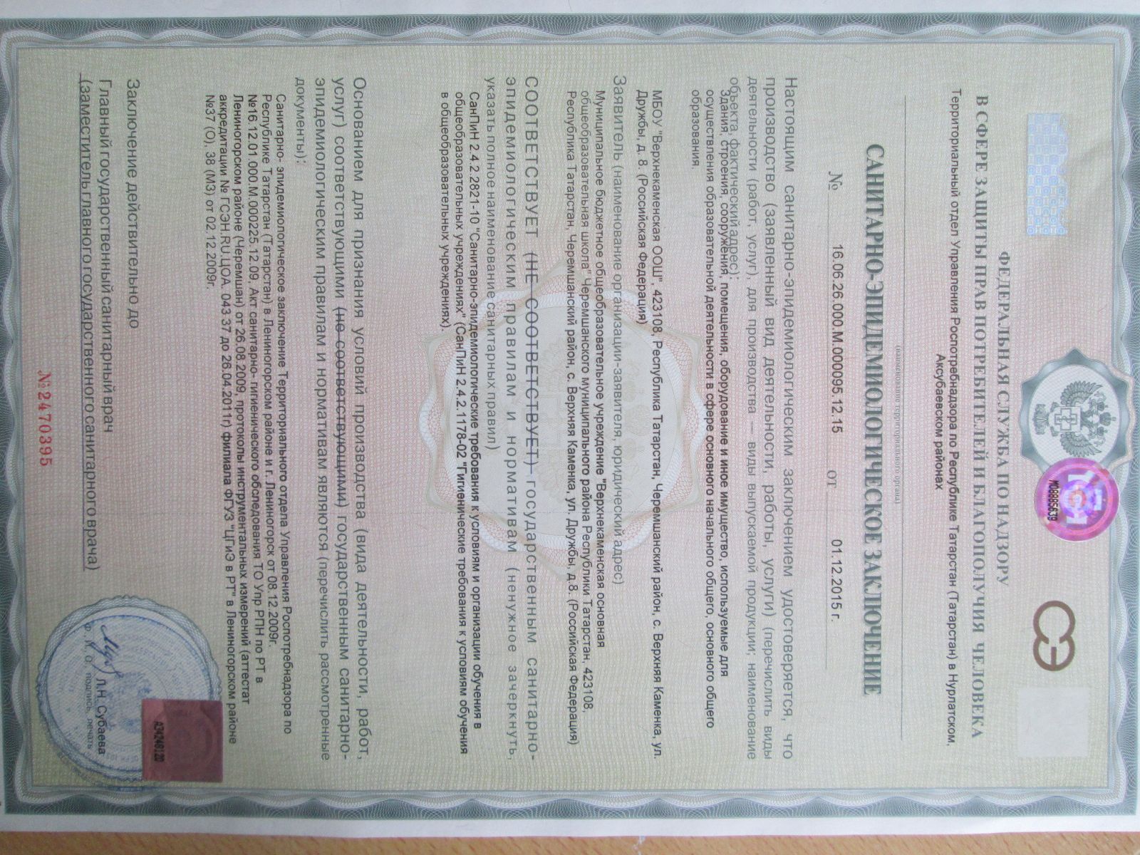 Заключение Санпид