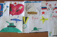 Среди начальных классов была организована выставка рисунков, посвящённая победе в ВО войне.