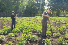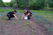 Сегодня 7 июня в пришкольном лагере труда и отдыха после построения и поднятия флагов России и Татарстана проведён трудовой десант.Дети работали на огороде: пропололи картошку и поливали грядки.