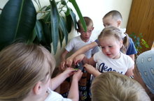 Сегодня в пришкольном лагере Капитошка - День Леса. Воспитанники лагеря посетили сельскую библиотеку, где воспитатели провели конкурсно-игровую программу "На лесной опушке". После обеда отряд отправился на экскурсию в лесной массив, где собрал природного материала. После обеда ребята изготовили поделки из природного материала и играли в спортивные игры.