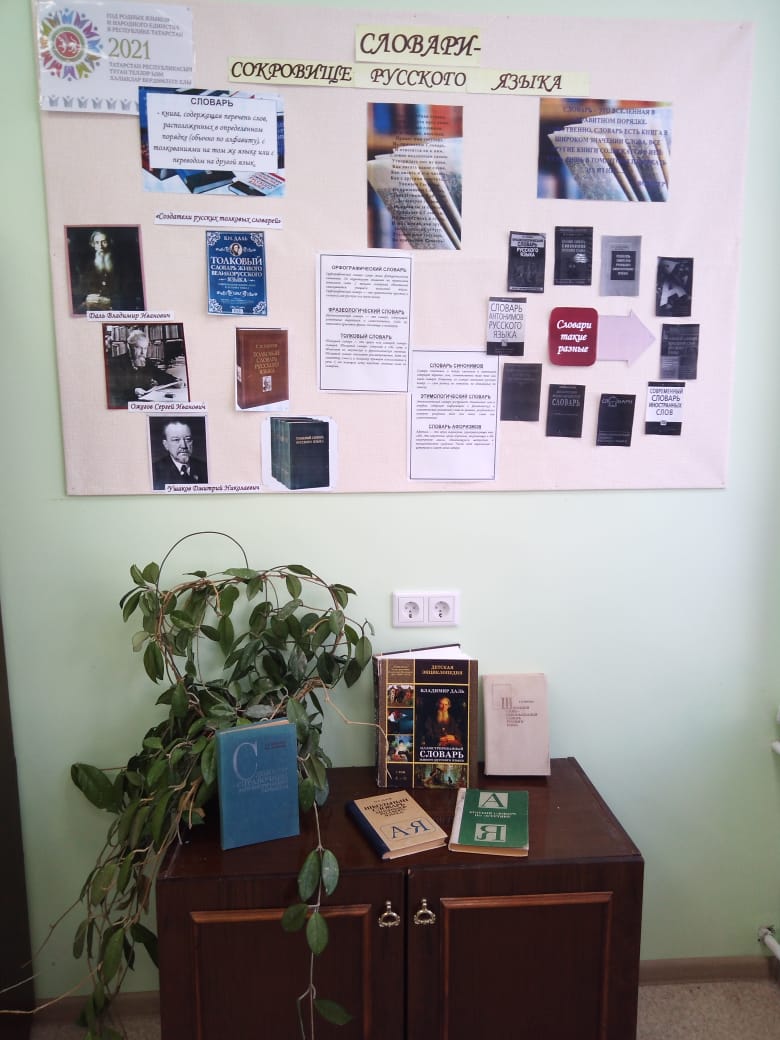 Мәктәп китапханәчесе Воронина н. А. "Сүзлекләр - рус теле хәзинәсе"дигән стенд әзерләде. туган телләр һәм Халыклар бердәмлеге елына багышланган.