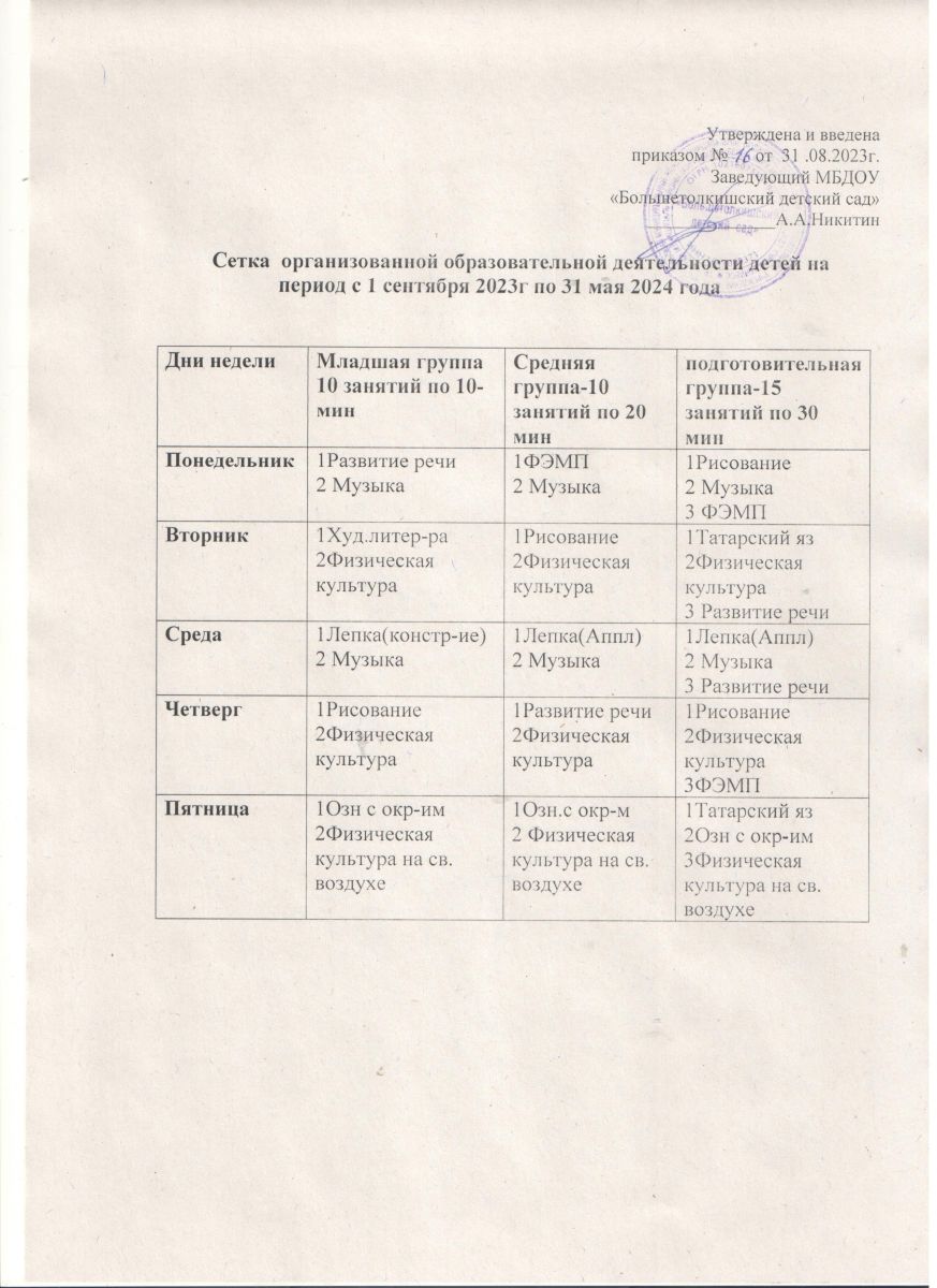 сетка организованной образовательной деятельности на 2023-2024 уч. год