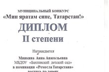 Диплом 11 степени поздравляем победителей педагогов ДОУ в муниципальном конкурсе "Мин яратам сине Татарстан !" в номинации "Ремесла Татарстана"