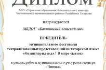 Мы победители муниципального фестиваля театрализованных представлений на татарском языке "Экиятлэр илендэ\В мире сказок"