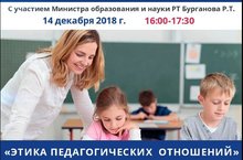 14 декабря 2018 года в 16 часов состоится очередное заседание Республиканского родительского интернет-собрания на тему: «Этика педагогических отношений: педагог, ученик, родитель». Данный проект – совместная инициатива Министерства образования и науки Республики Татарстан и Общественного совета при Министерстве образования и науки Республики Татарстан.