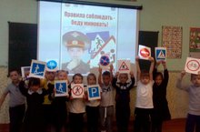 С целью профилактики детского дорожно-транспортного травматизма и повышения безопасности дорожного движения у учащихся , в рамках Недели безопасности дорожного движения члены отряда ЮИД (4 класс) провели для учащихся 1 класса урок безопасности "Правила соблюдать-беду миновать!"