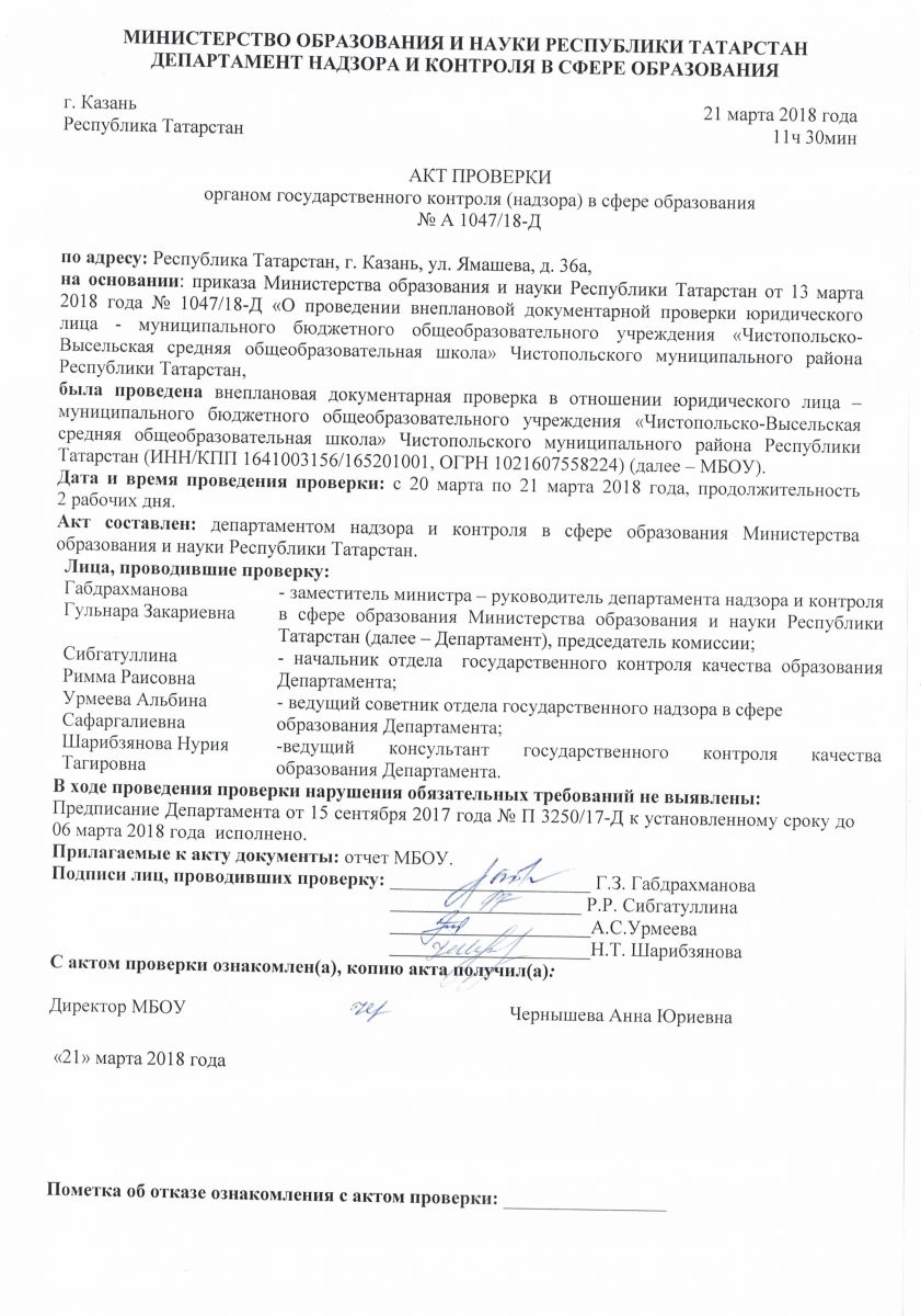 Муниципальное бюджетное общеобразовательное учреждение «Чистопольско-Высельская средняя общеобразовательная школа» Чистопольского муниципального района Республики Татарстан / Татарстан Республикасы Чистай муниципаль районының "Чистай Выселкасы урта гомуми белем мәктәбе" муниципаль бюджет гомуми белем учреждениесе
