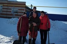 В рамках республиканкой акции «Весенняя неделя добра - эстафета добрых дел» учащиеся школы провели очистку от снега территорию памятника погибшим воинам-землякам.