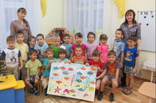 Акция "Один день с родителями" - "Волшебный аквариум"в группе "Сказка". 10.02.2014 Коллективная работа по аппликации с использованием макаронных изделий.