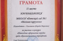 Поздравляем коллектив с вручением Почетной грамоты от администрации г.Чистополя за 2 - е место в новогоднем оформлении города среди образовательных учреждений! 09.02.2014 Мы молодцы!!!