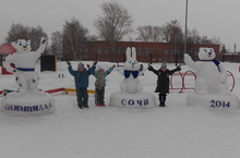 Снежные фигуры 23.12.2013 На нашей спортивной площадке появились снежные символы олимпийских игр в Сочи 2014г.